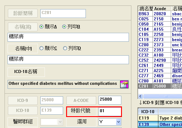 反之,若醫師專業判斷某一病名應為慢性病診斷,則於上圖「特診代號」欄位