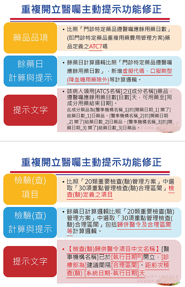 健保雲端跨院重複開立醫囑主動提示功能(API)新增修正
