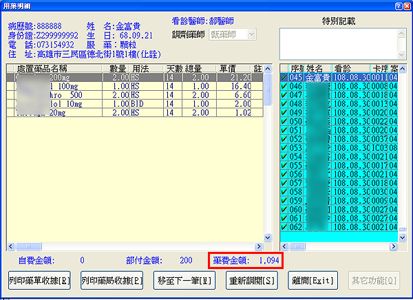 三、藥局掛號清單按右鍵查看藥品內容畫面(用藥明細),可否增加『藥費』欄位並顯示金額。
