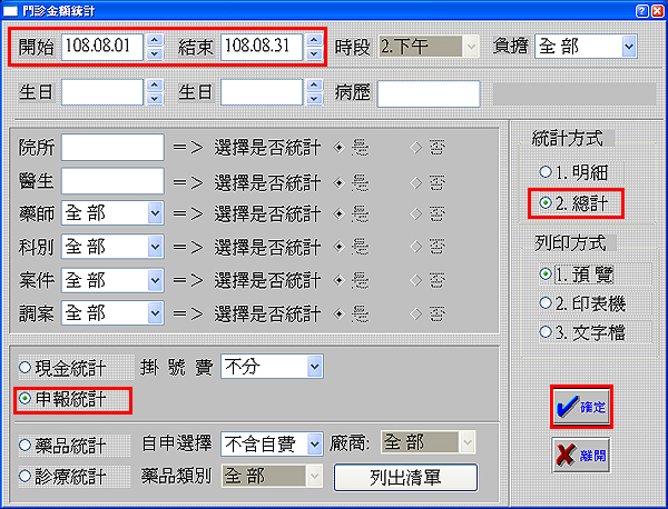 二、費用統計的『申報統計』,在『總計』報表的『院所欄位』可否由院所代號改列『院所名稱』。