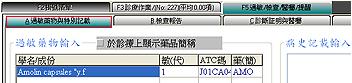 『F3診療作業』畫面上方用滑鼠左鍵點選「F5 過敏/檢查/醫囑/提醒」接著再點選「A.過敏藥物與特別記載」,於下方「過敏藥物輸入」區內輸入該病患會過敏的藥品內容即可。