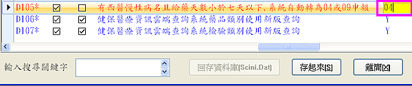 編號D105「有西醫慢性病名且給藥天數小於七天以下,系統自動轉為04或09申報」