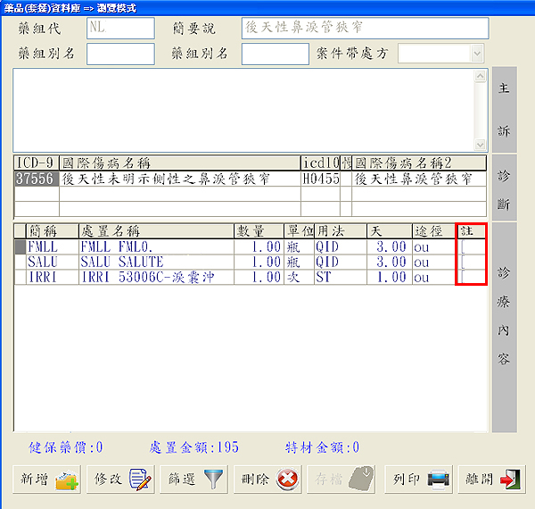 編號B166「藥組資料畫面內的(總量)欄位是否移至(註)的位置」