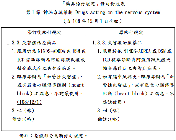 主旨:公告修訂1.3.3.失智症治療藥品之藥品給付規定。