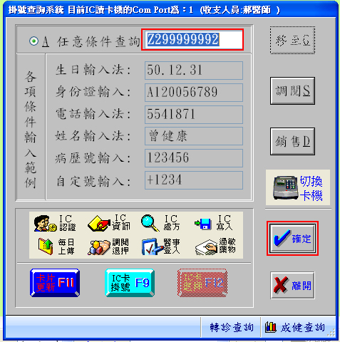2. 輸入病歷號、自定號、姓名、生日、身份證、電話等其中一項資料