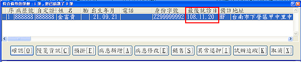 F2掛號查詢病患基本資料的符合視窗可否顯示最後就診日