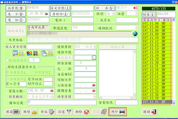 進入『1病患資料』再按下『F4篩選』
