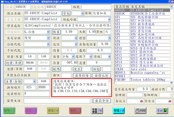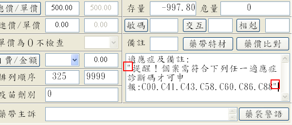 再於「適應症及備註」區,於要加註提醒文字前後加入半形「"」如下圖示