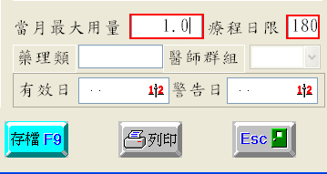 於右下角「當月最大用量」或「療程日限」欄位,依院所需求輸入