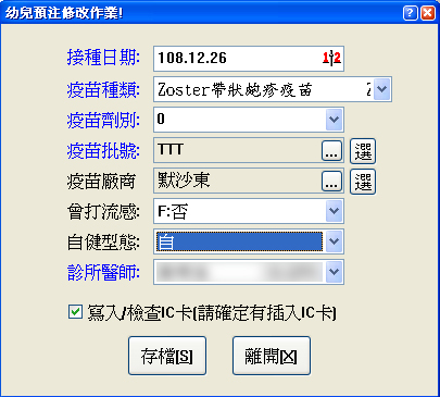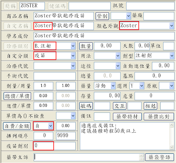 -例如:Zoster(靠左鍵入完整疫苗代碼,再鍵入自定文字)