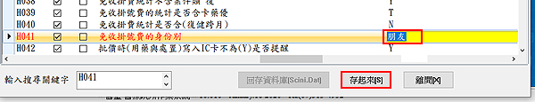於上方點選參數標籤「OTHER [H]」於下方尋找編號H041「免收掛號費的身份別」右方設定值