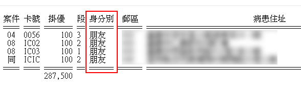 Q:為何院所未設定優免掛號費身分別,但轉出優免名冊時身分別欄位卻是朋友或特定文字