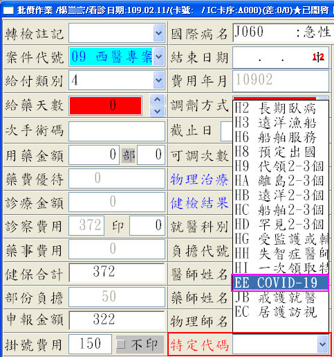 醫聖說明:新增特定代碼『EE』(COVID-19),請用戶更新門診系統版次至10.022以上即可!