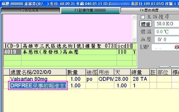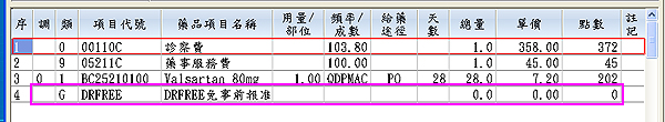 ● 於符合案件處方內,多鍵入一筆「DRFREE」虛擬醫令項目即可