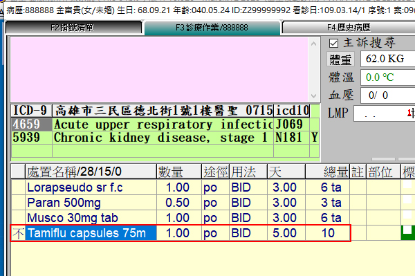 軟體相關操作方式不變,於病患當次就醫處方鍵入使用之抗流感病毒藥劑代碼即可