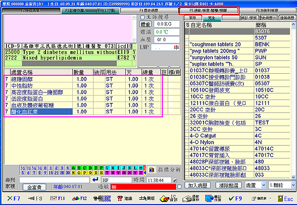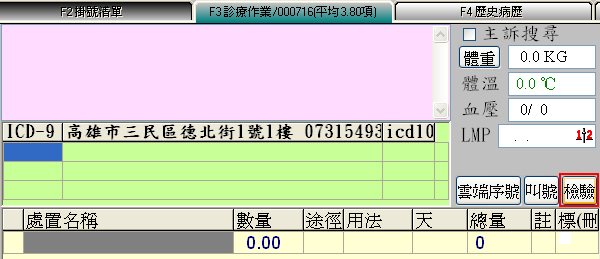 方式一)於『F3診療作業』病名區右方用滑鼠左鍵點選『檢驗』鍵可快速跳至『B檢查報告』區