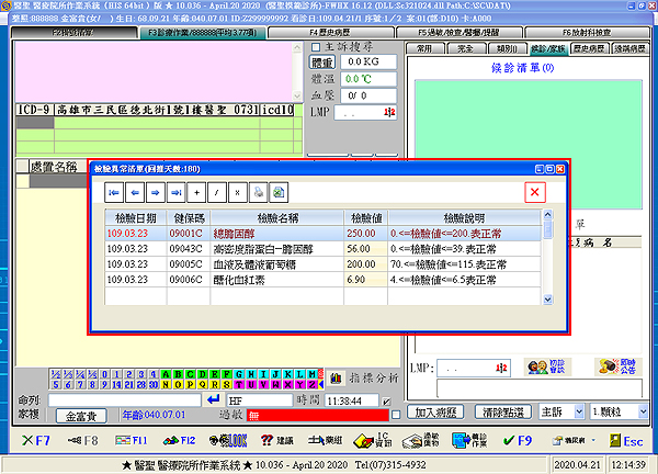 更版功能:診療時顯示病患近幾個月檢驗異常值,便於看診醫師判斷病情掌握與追蹤相關疾病狀況