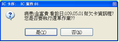 系統設定提醒該病患有押單尚未還單,是否先進行退押還單作業再掛入當次看診