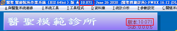 如何辨識醫聖診療系統更新後版次:於醫聖門診系統主畫面左上方抬頭列即可查看