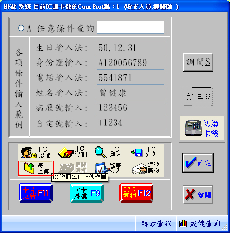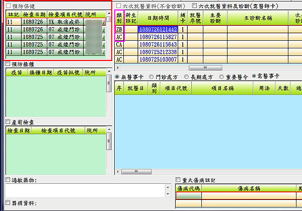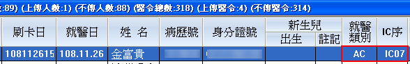 ├ 健保卡『IC資訊』呈現如下圖示(過卡存檔時寫入)