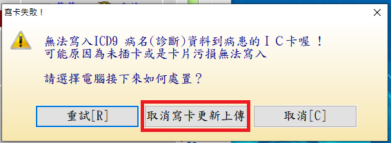 點選「取消寫卡更新上傳」即可更新IC上傳醫令內容