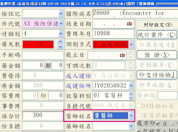 於批價作業畫面按下「存檔」時,當存檔醫師姓名不為『郝醫師』即出現提醒(鎖死無法存檔)