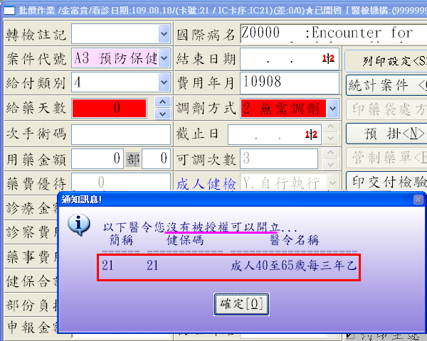 ↓↓↓ 會出現被限制使用的醫令品項顯示視窗,如下圖範例