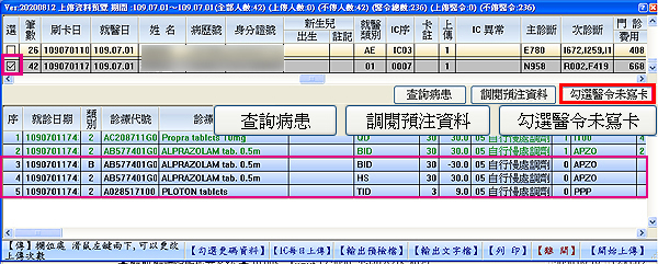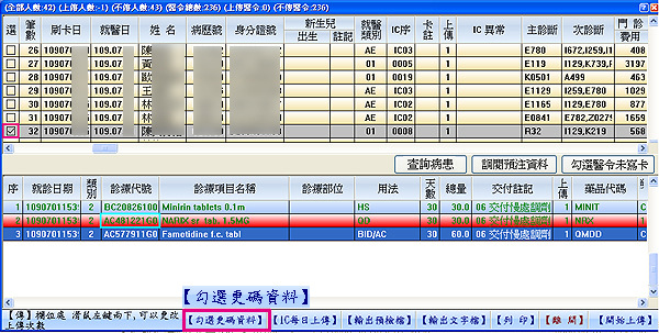 同時一併修改相關病歷藥品健保碼之異動IC上傳醫令筆數一次勾選並進行補正上傳
