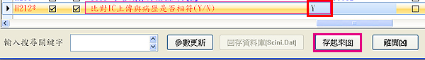 編號H212 或「比對IC上傳與病歷是否相符(Y/N)」將右方設定值改為「Y」