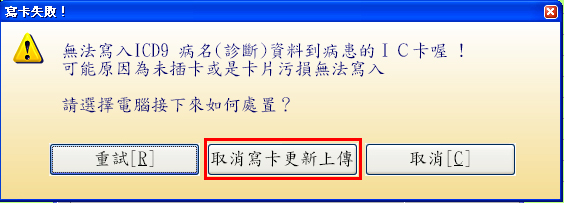 更版功能說明二:點選『勾選醫令未寫卡』可將處方內有未寫入健保卡之IC上傳醫令筆數或