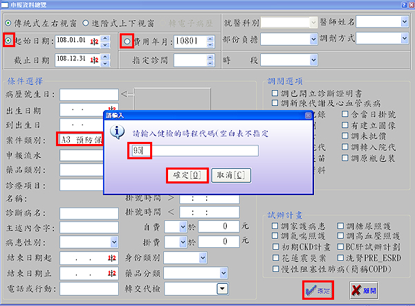 2. 於條件選擇,「案件類別」點選「A3預防保健」,再按下「確定」