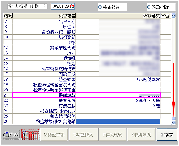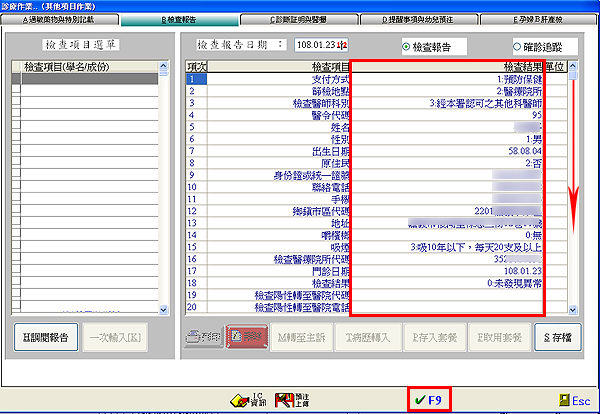 填入需補登報告檢查結果完成後,再按下「vF9」存檔即可。