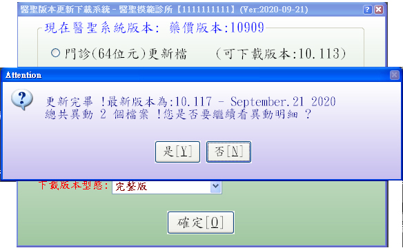 3. 執行更新完畢會出現如下訊息,可查閱當次異動更新檔案明細,若不查閱按「否」即可