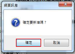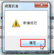 出現詢問「確定要新增嗎?」視窗,按下「確定」;接著出現「新增成功」,按下「確定」