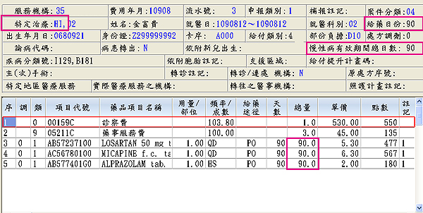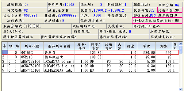 【門診申報醫令清單格式畫面顯示】『慢性病有效期間總日數』必為『給藥日份』的倍數(2或3)