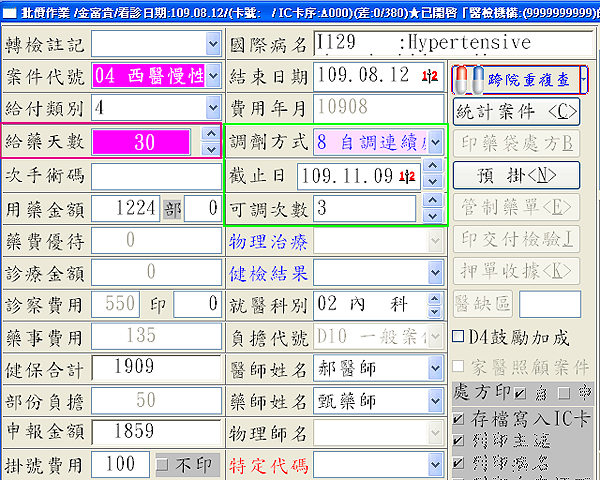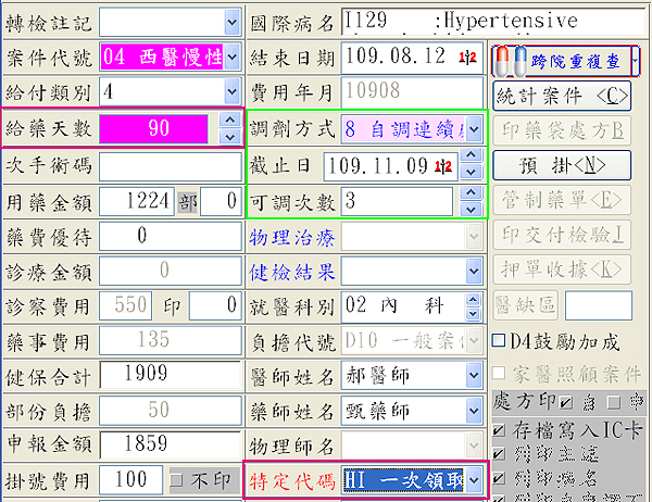 【醫聖門診系統批價作業顯示】『調劑方式』7交調連續或8自調連續&『可調次數』2或3