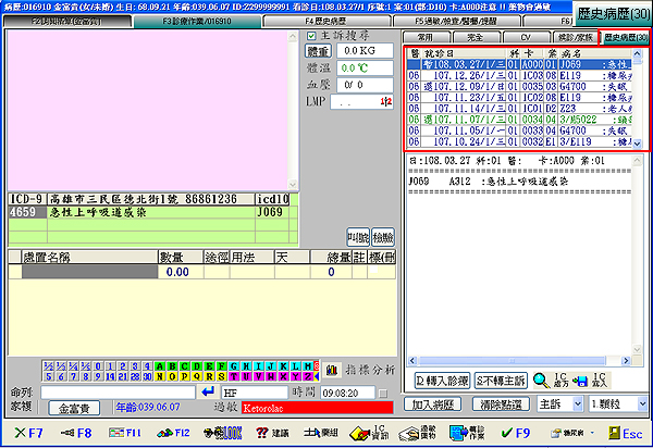更版功能:F3診療作業右側『歷史病歷』區點兩下滑鼠左鍵進入修編功能可改為直接DITTO該筆病歷