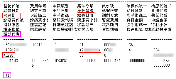 費用申報診斷病名代碼出現『 W1 / W2 』檢核錯誤筆數時如何處理