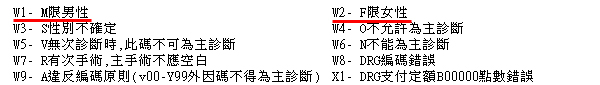 診斷病名出現『W1/W2』與性別不符檢核錯誤時如何處理