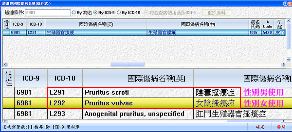 處理方式說明:請確認病患性別及病歷病名是否使用不符合之『ICD-10診斷代碼』如下圖示