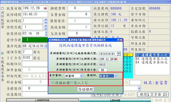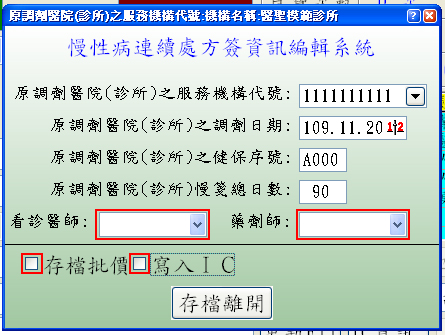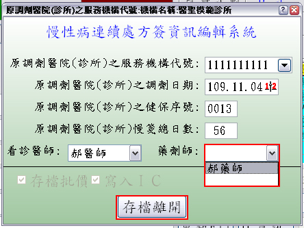 『看診醫師』:自動帶入第一次開立連續處方箋醫師姓名(無需異動)