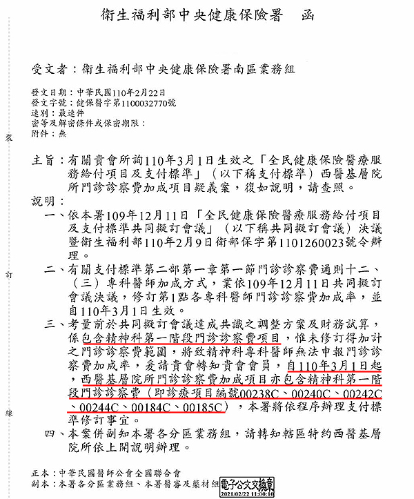 有關修訂各專科醫師門診診察費加成率包含精神科第一段項目釋疑
