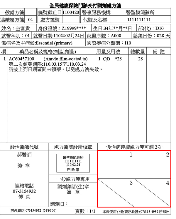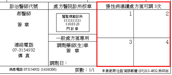 標準繁式連續處方箋如何依照可調次數劃掉多餘調劑蓋章格