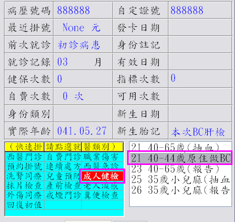 更版功能:為配合國健署上述修訂,因應原掛號提醒是否併做BC肝篩檢機制