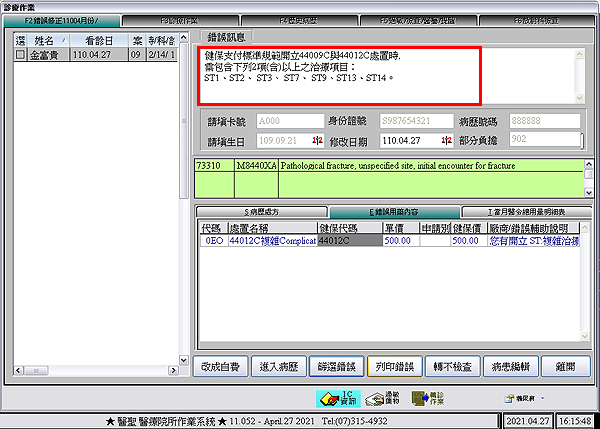 於9申報作業>1.檢查申報資料內新增『e.處方內開立44009C、44012C時,診斷不符相關內容』