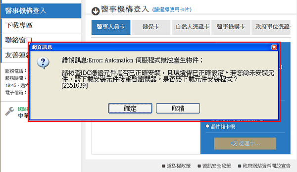 健保資訊網服務系統VPN及雲端藥歷查詢網站登入時出現「錯誤訊息:Error:Automation伺服程式無法產生物件」如何排除