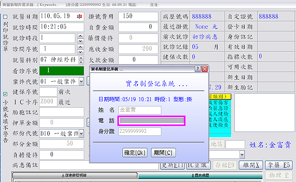 登錄姓名、身分證、電話欄位(無記錄者手動輸入),再按下『確定』