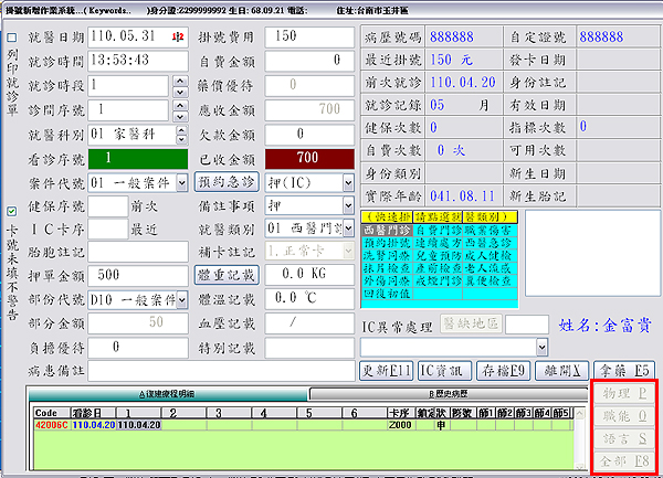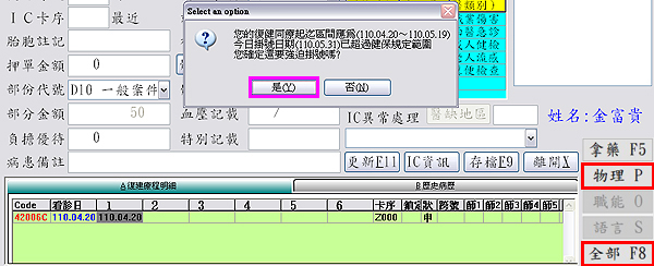 於當次療程刷卡掛號畫面,按下鍵盤「F12」即可解鎖療程選項