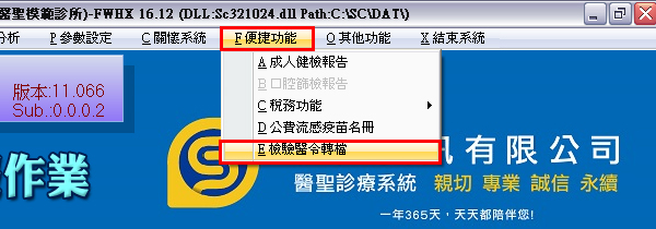 更版功能:新增檢驗醫令便捷轉檔功能,提供配合檢驗單位申報對帳用