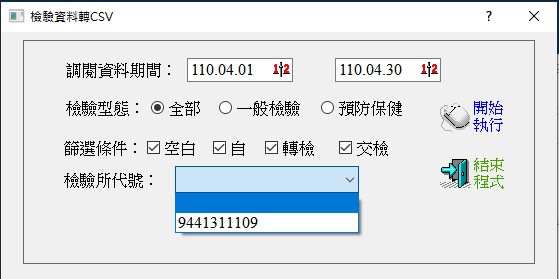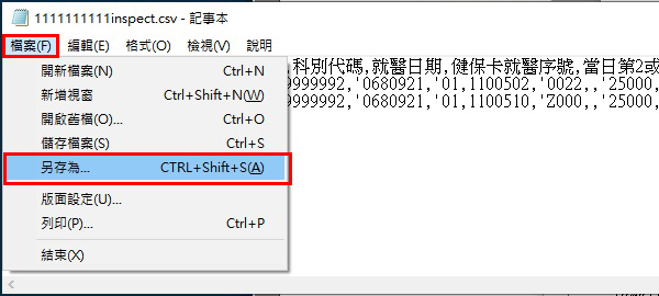 預設檔案名稱為:診所院代+inspect.csv,例如1111111111inspect.csv
